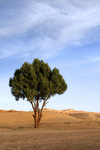Eenzame boom aan de rand van de woestijn bij Merzouga, Marokko